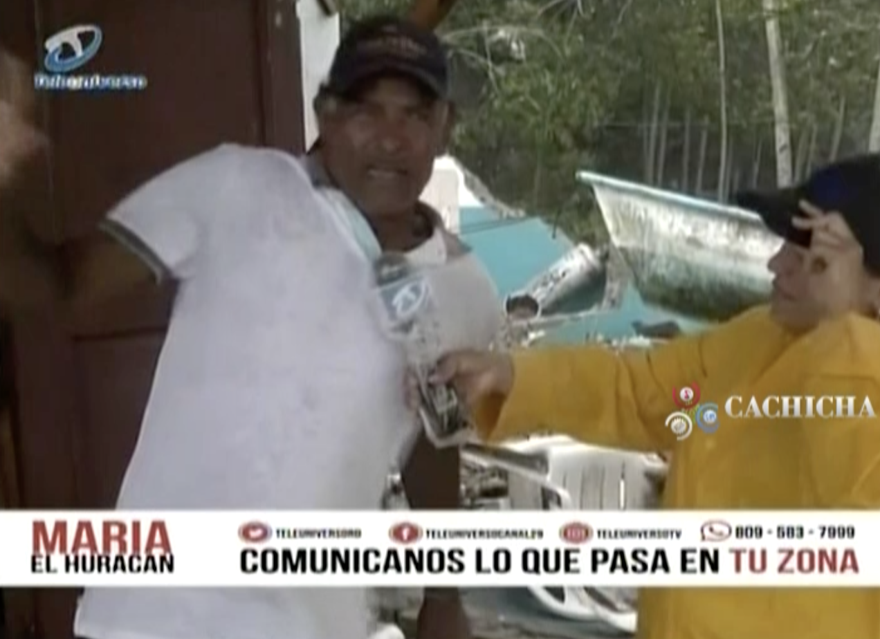 TeleUniverso Con El Huracán Prácticamente Dentro De La Casa Un Hombre Dice : Aquí Todo Está Bien, Aquí No Pasa Nada 09/21/17