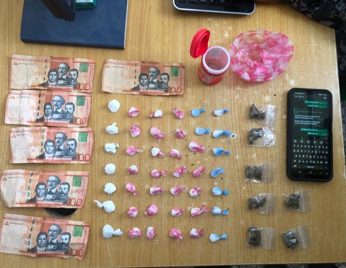 Entre los apresados figura, Emmanuel Rodríguez, a quien se le ocupó la cantidad de 42 porciones de un polvo blanco presumiblemente cocaína y siete de presunta marihuana, el mismo al ser depurado en el sistema policial, presenta una orden de arresto por robo.