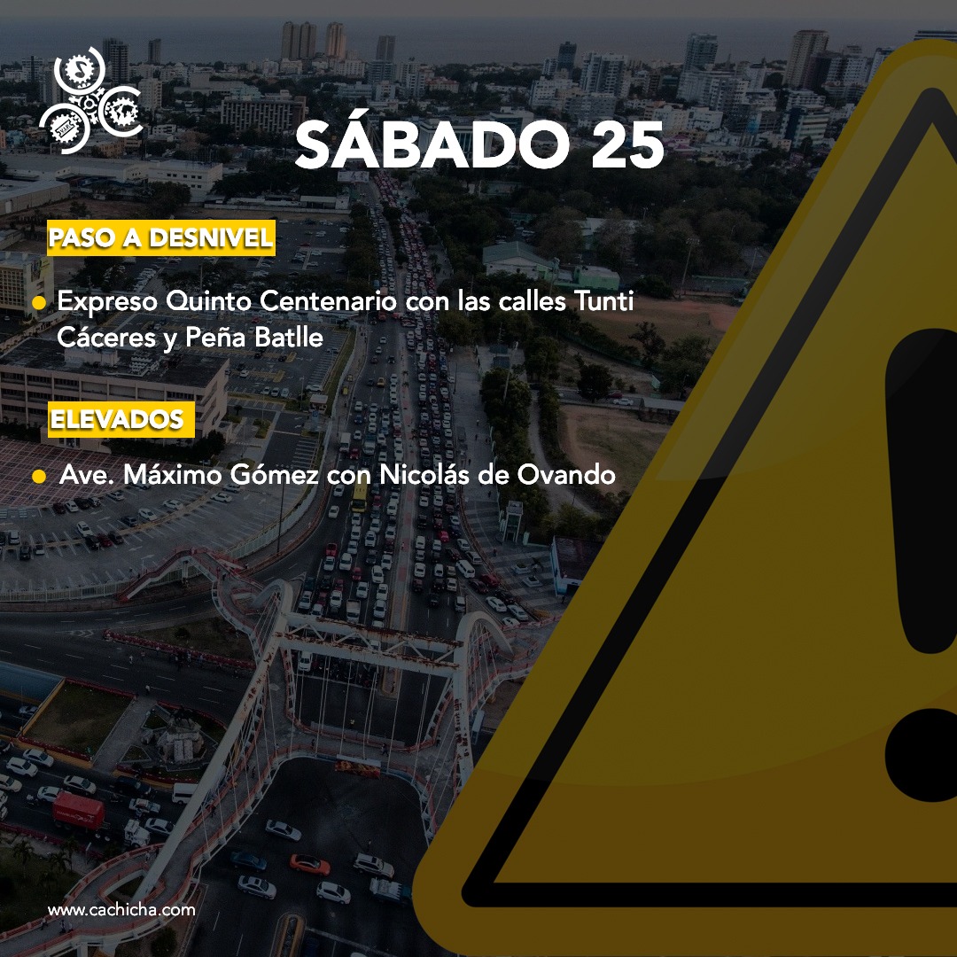 - El elevado de la Avenida Máximo Gómez con Nicolás de Ovando también estará cerrado durante este día.