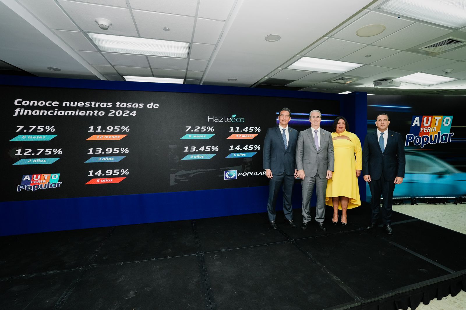 El Banco Popular Dominicano informó que la vigésima novena edición de la Autoferia Popular ofrecerá tasas fijas de 7.75% a seis meses; 11.95% a 12 meses; 12.75% a dos años; 13.95% a tres años; 14.95% a cinco años; además de condiciones especiales de financiamiento también para la compra de vehículos usados.