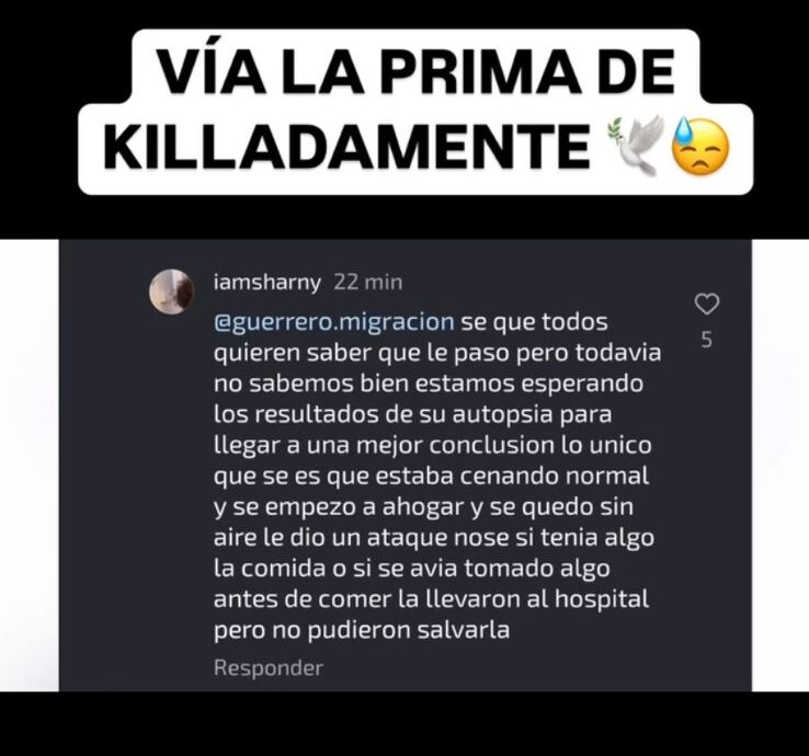 Según declaraciones de su prima, el trágico suceso ocurrió mientras cenaba. “Estamos esperando la autopsia, pero ella estaba cenando y de repente comenzó a quedarse sin aire. Le empezó a dar un ataque, no sabemos si la comida tenía algo, la llevaron al hospital, pero no pudieron salvarla”, comentó en una publicación en las redes.