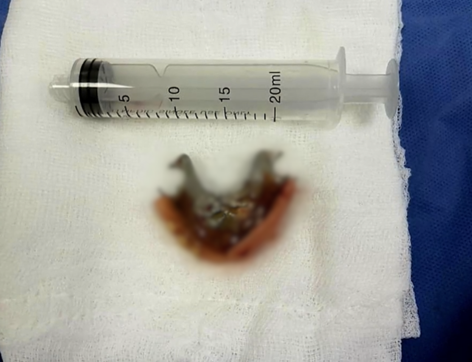 Al llegar al hospital, los médicos realizaron una radiografía cervical que reveló la impactante realidad: la dentadura postiza estaba incrustada en su hipofaringe, la zona inferior de la garganta ubicada detrás de la laringe y antes del esófago.
