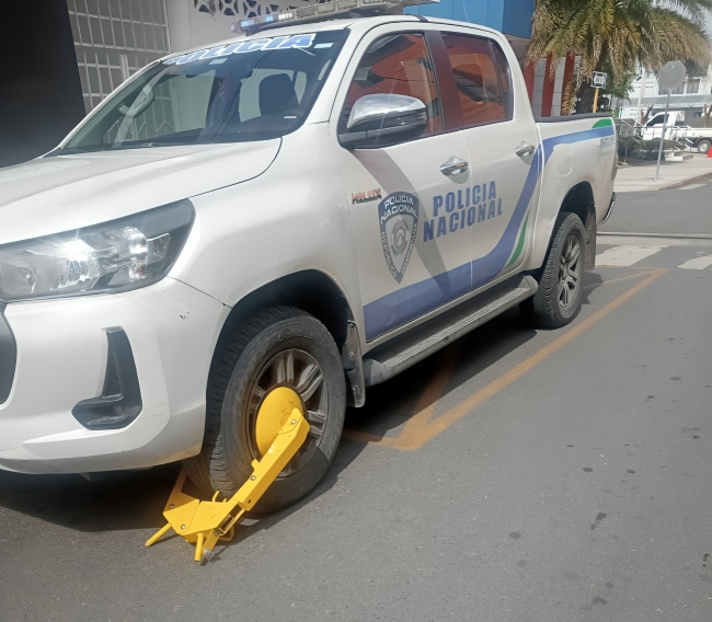 La Alcaldía de Moca, en la provincia Espaillat, ha aplicado estrictamente su normativa de tránsito al colocar un candado a una patrulla de la Policía Nacional que se encontraba mal estacionada en una de las principales vías del municipio.