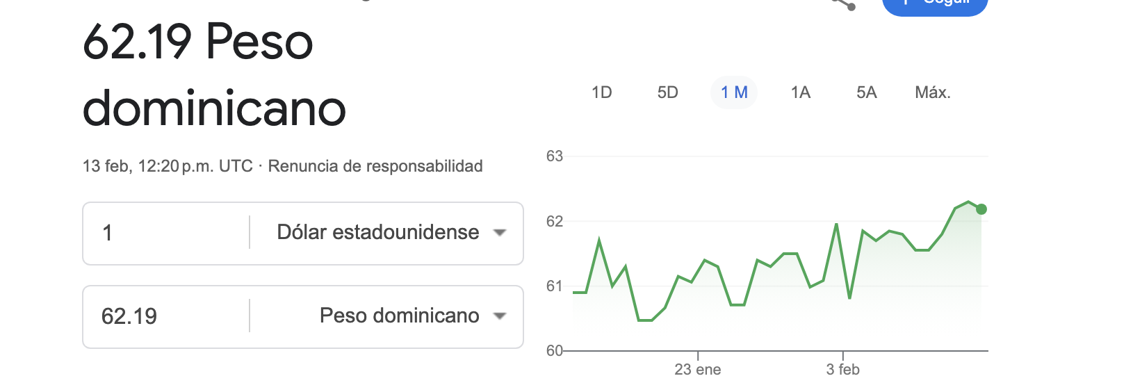 El precio del dólar estadounidense en las casas de cambio de la República Dominicana ha alcanzado un nivel récord, cotizándose a RD$62.19 para la compra y RD$61.97 para la venta al inicio de la jornada de este jueves 13 de febrero de 2025.