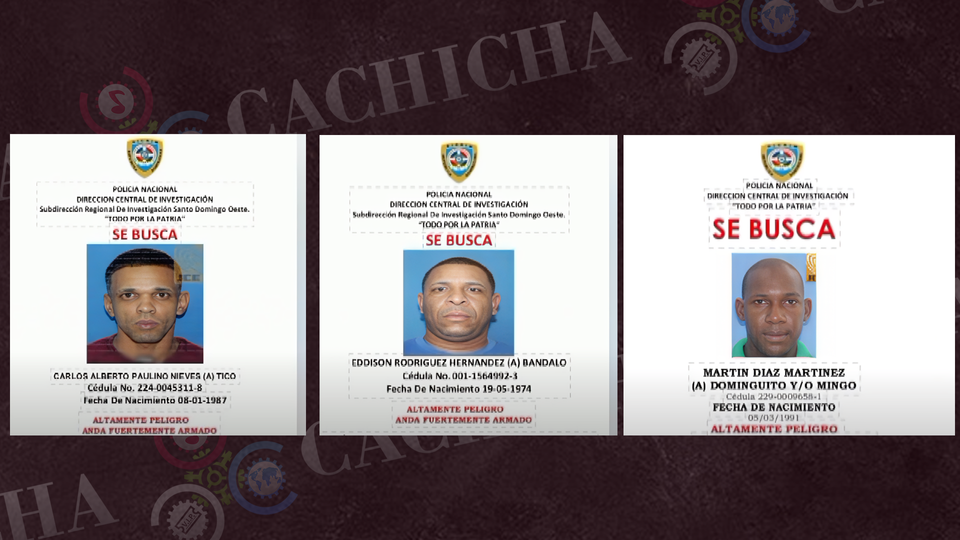 En las últimas horas, la Policía ha intensificado operativos en Santo Domingo Oeste, Los Alcarrizos y zonas aledañas para dar con el paradero de estos prófugos.