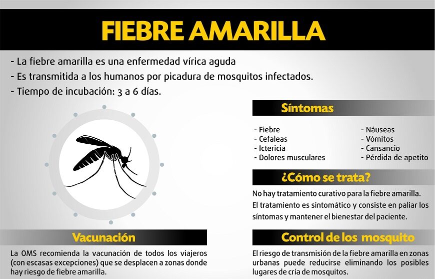 La fiebre amarilla es una enfermedad viral transmitida por mosquitos del género Aedes, similar al dengue, zika y chikungunya. Aunque no circula en el país, las autoridades insisten en mantener medidas preventivas como eliminar criaderos de mosquitos, tapar tanques de agua y buscar atención médica ante fiebre persistente o dolores musculares intensos.