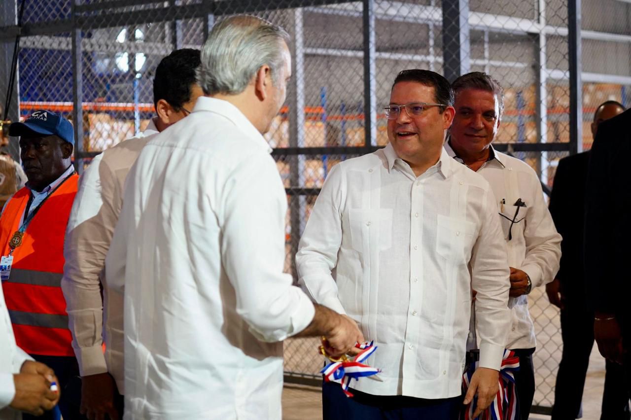 El presidente Luis Abinader y el director general de Aduanas, Eduardo Sanz Lovatón, inauguraron una moderna terminal courier en el Aeropuerto Internacional Las Américas, Dr. José Francisco Peña Gómez, destinada al manejo y almacenaje de paquetería expresa y comercio electrónico.
